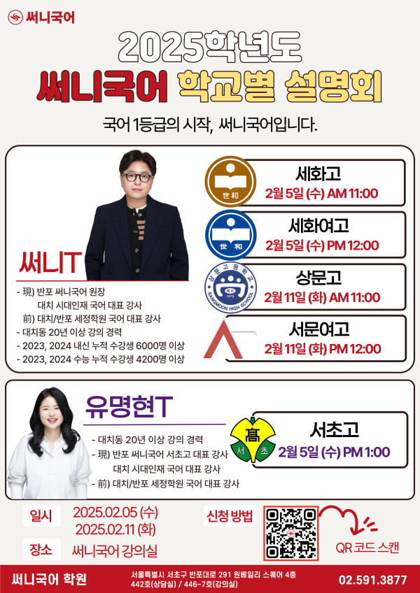2025학년도 써니국어 학교별 설명회(*상문/서문 날짜 변경)
