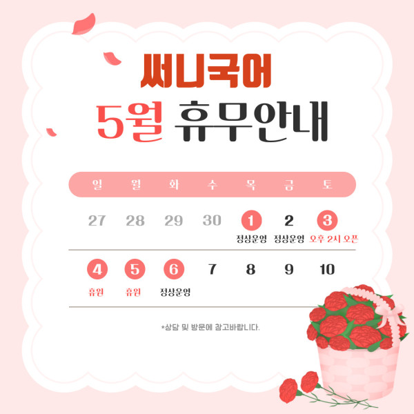 써니국어 5월 휴무 안내