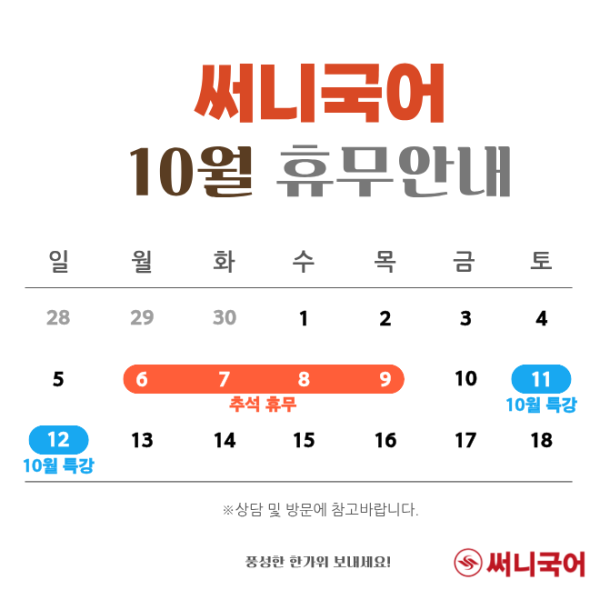 써니국어 10월 휴무안내